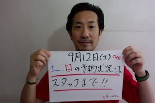 本日、9月12日(土)の予約状況は、若干の空きがあります。