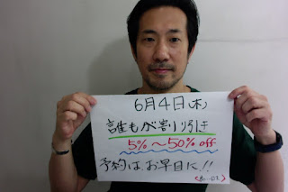 本日、6月4(木)の予約状況は、ほぼいっぱいです。