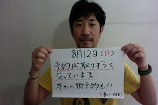 本日、8月12日(月)の予約状況は、いっぱいにより受付終了しました。
