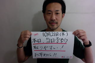 本日、10月21(木予約状況は、余裕あります。