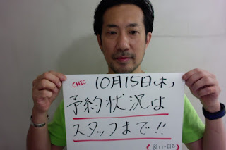 本日、10月15日(木)の予約状況は、夕方から空きあります。