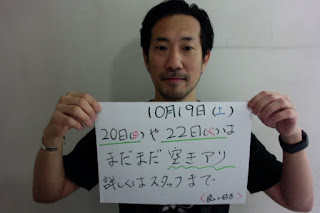 本日、10月19日(土)の予約状況は、いっぱいにより受付終了しました。