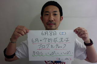 本日、6月8(土)の予約状況は、ほぼ、いっぱいです。