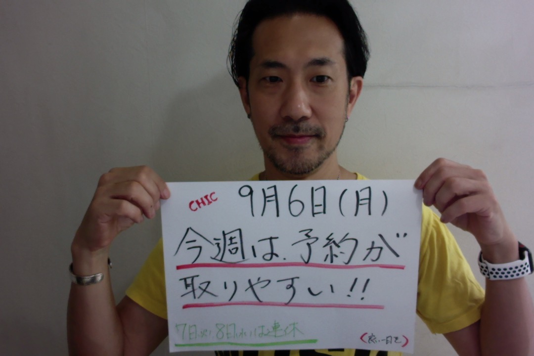 本日、9月6(月)の予約状況は、空きあります。