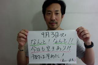本日、9月3日(火)の予約状況は、施術内容や時間帯によってお取りできます。