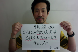 本日、9月5日(木)の予約状況は、ほぼいっぱいです。