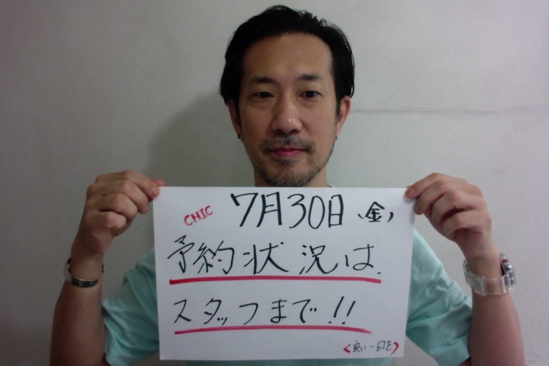 本日、7月30(金)の予約状況は、空きあります。