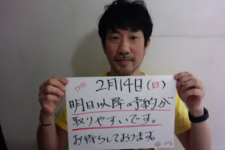 本日、2月14(日)の予約状況は、ほぼいっぱいです。
