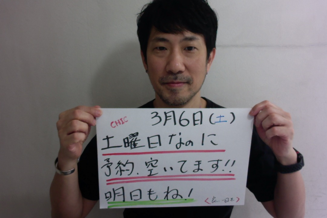 本日、3月6(土)の予約状況は、空きあります。