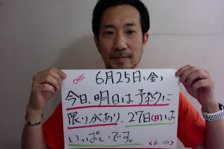 キャンセルが出る事もあり今後は「Twitter」でこまめに空き時間をお知らせしますのでチェックしてください。