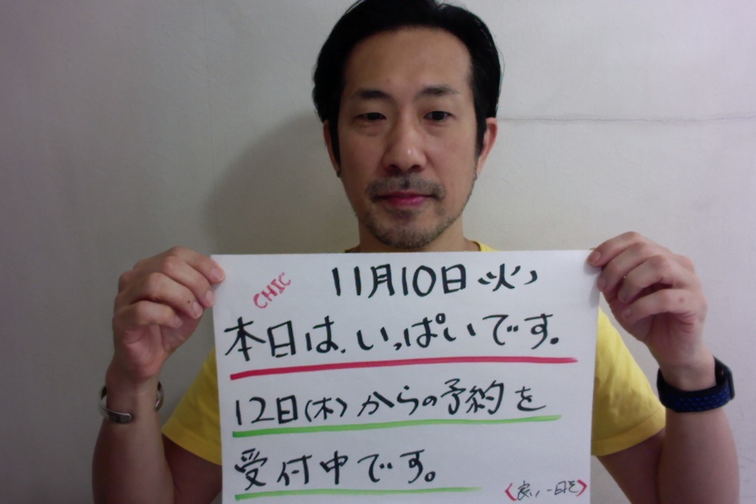 本日、11月10日(火)の予約状況は、いっぱいです。