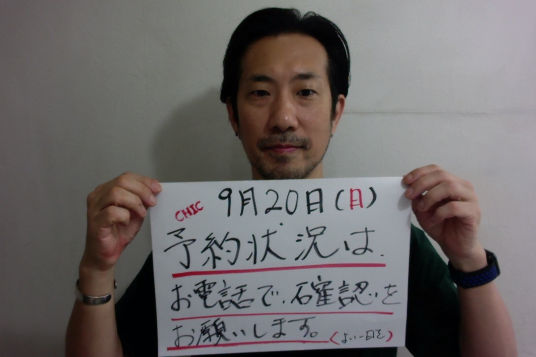 今日を含めた連休は若干名の空きがありますのでお電話でお問い合わせください。