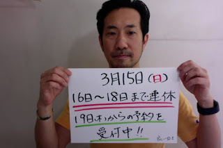 本日、3月15(日)の予約状況は、ほぼ、いっぱいです。