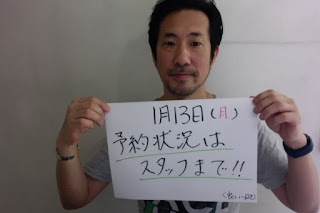 本日、1月13(月)の予約状況は、ほぼ、いっぱいです。