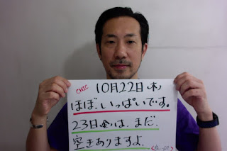 本日、10月22日(木)の予約状況は、いっぱいです。