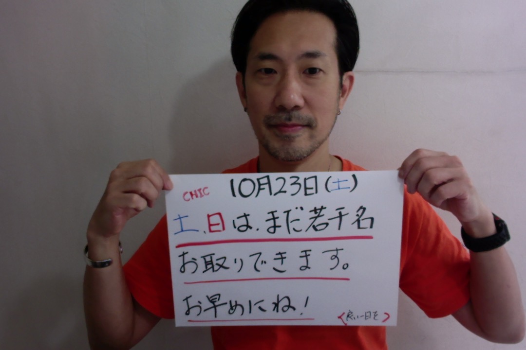 本日、明日は若干名お取りできますがご予約はお早めに!