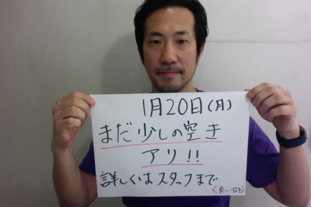 本日、1月20(月)の予約状況は、施術内容や時間帯によってお取りできます。