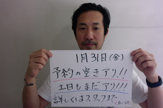 本日、1月31(金)の予約状況は、全体的に余裕があります