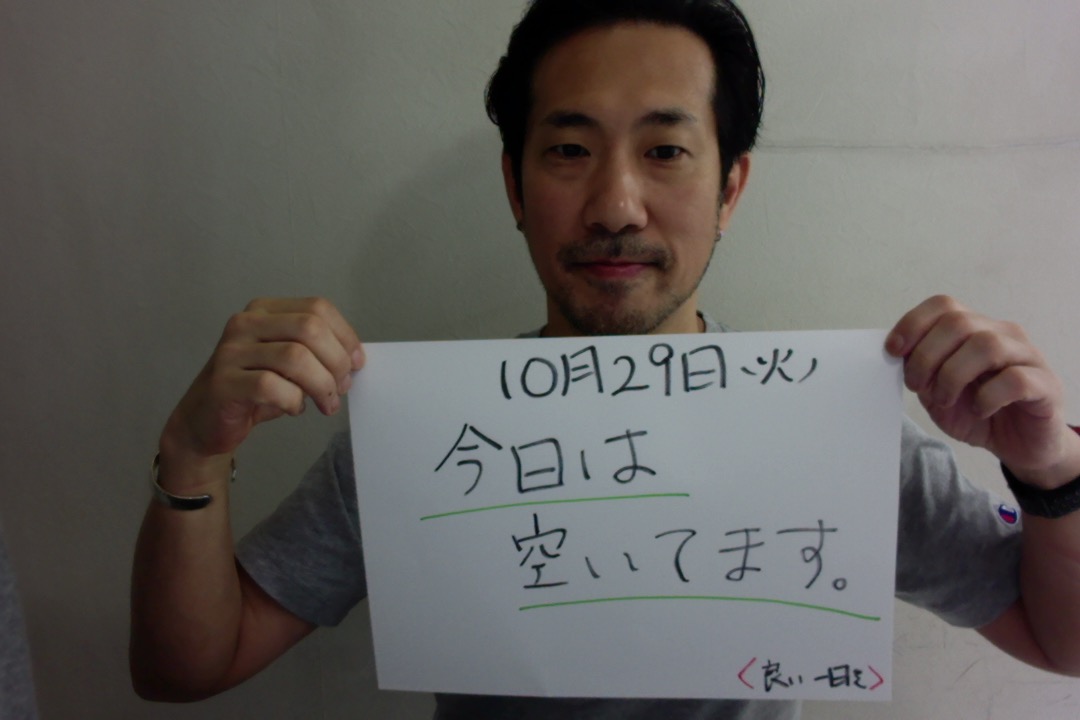 本日、10月29日(火)の予約状況は、全体的に余裕があります。