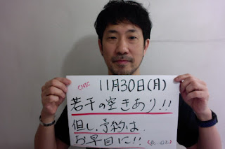本日、11月30日(月)の予約状況は、空きあります。