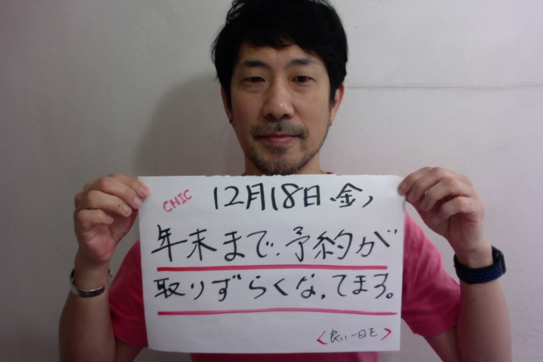 年明けも予約受付をしていますが、こちらも予約が入ってきておりますので、年内中にご来店ができない方で年明けにという方もお早めにご予約をお願いします。