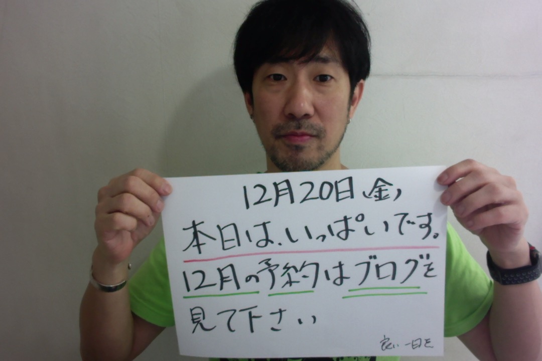 本日、12月20(金)の予約状況は、いっぱいです。