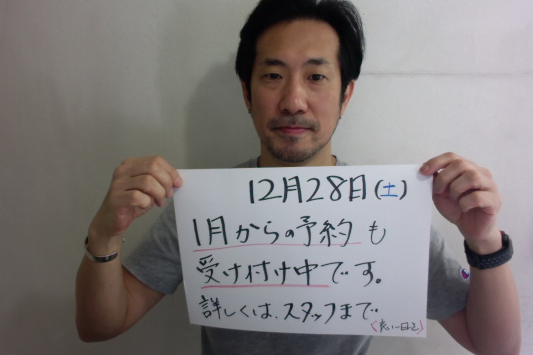 年明けも予約受付をしていますが、こちらも予約が入ってきておりますので、年内中にご来店ができない方で年明けにという方もお早めにご予約をお願いします。