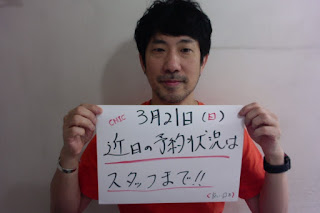 本日、3月21(日)の予約状況は、ほぼいっぱいです。