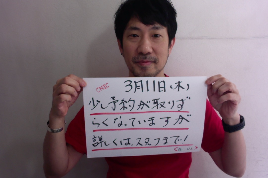 本日、3月11(木)の予約状況は、夕方から空きあります。