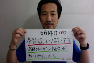 今日、明日は予約がいっぱいになっていて18日(木)からの予約を受付中です。
