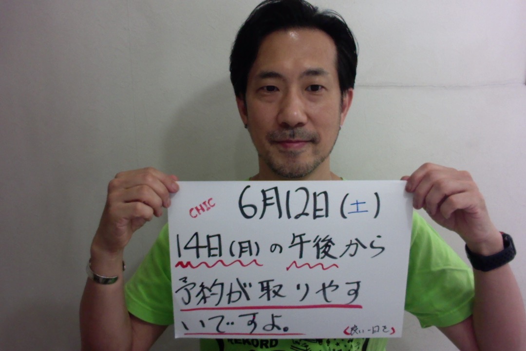 本日、6月12(土)の予約状況は、ほぼいっぱいです。