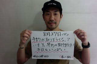 本日、8月27日(火)の予約状況は、いっぱいにより受付終了しました。
