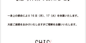 臨時休業のお知らせ