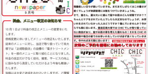 「CHIC新聞」9月号 重要なお知らせ!